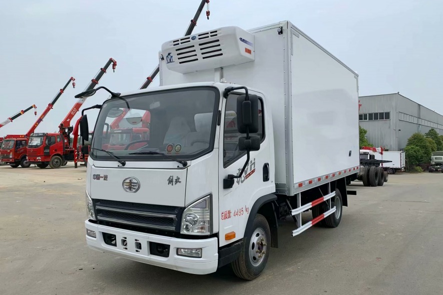 冷藏机组: 可选-5℃至-18℃冷机/冷机品牌不同价格有所变化 其它配置: 采用中国第一汽车集团有限公司原厂底盘;新款解放虎VH宽体单排驾驶室/驾驶室可乘座3人;搭载潍柴锐动力4缸130马力发动机(排量为3.0L/功率为96Kw/扭矩为350N.m);万里扬6挡变速箱;5吨后桥/速比4.875;气刹/断气刹/ABS/感载比例阀;有方向助力/离合助力;有刹车自动调整臂;大灯调节;定速巡航;中控门锁/电动门窗/遥控钥匙;有冷暖空调;其它标配。